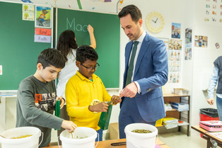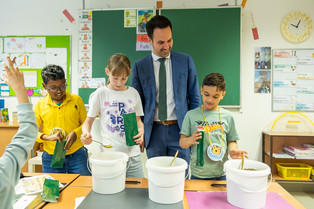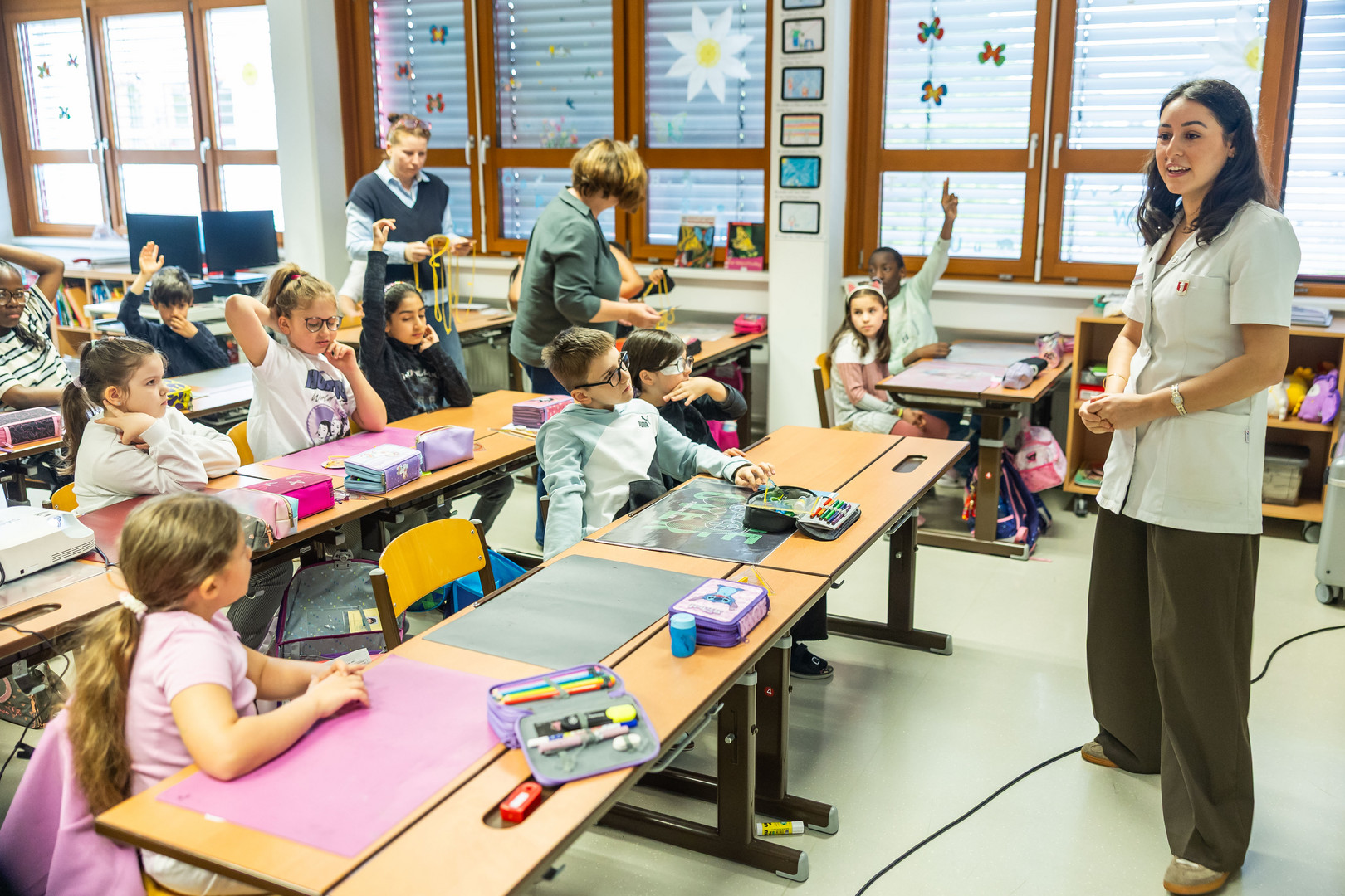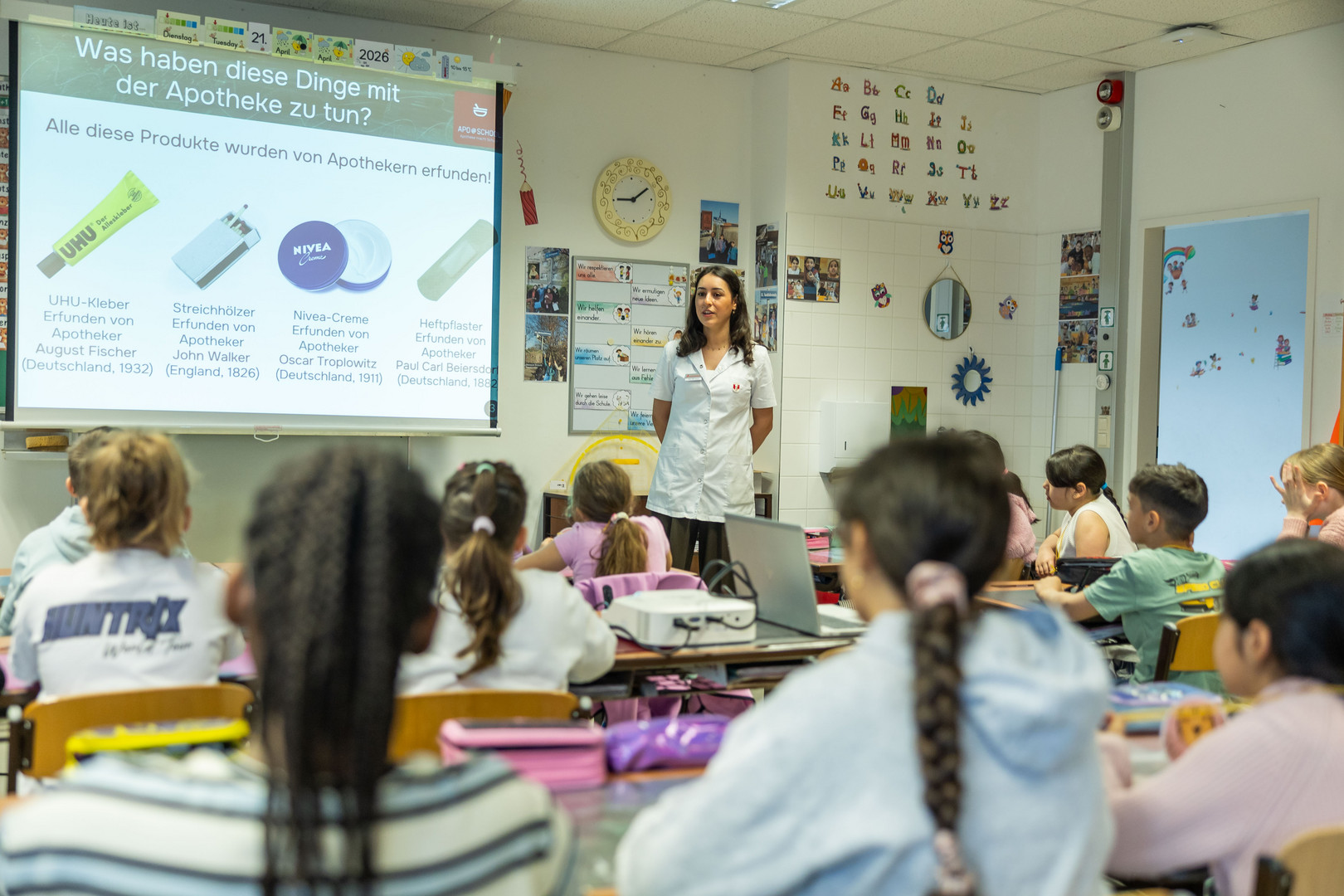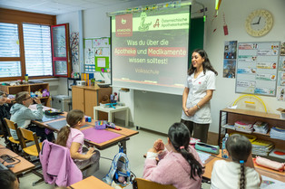 Gesundheitsbildung sollte möglichst früh beginnen. Darum besuchen Apotheker:innen im Rahmen von apo@school Schulklassen in ganz Österreich und vermitteln im Rahmen von interaktiven Projektstunden ein Basiswissen über Arzneimittel, die Aufgaben der Apotheken und das Berufsbild Apotheker:in. In einer Volksschule im 22. Wiener Gemeidebezirk hat sich nun Bildungsminister Christoph Wiederkehr persönlich einen Eindruck von dem Bildungsprojekt der Apothekerkammer verschafft.